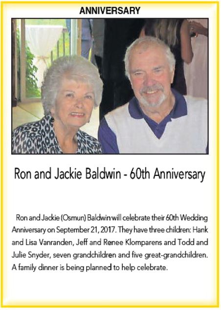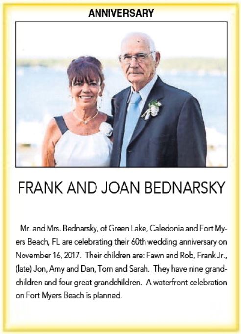 If you, or some member you know, is having a 50th anniversary, or more, please let us know. Details and a photograph of the couple would be appreciated.